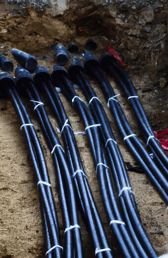 We connect properties to the electricity network using underground service cables from the nearest pillar or pit, including all trenching, conduit, and terminations.
